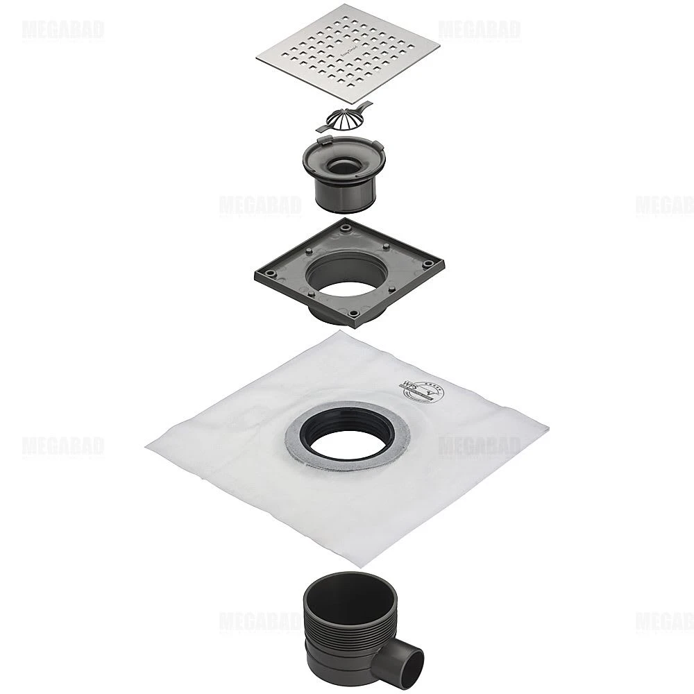 Architekt Home Badablauf 15 x 15 cm Abgang waagerecht Abdeckung Edelstahl