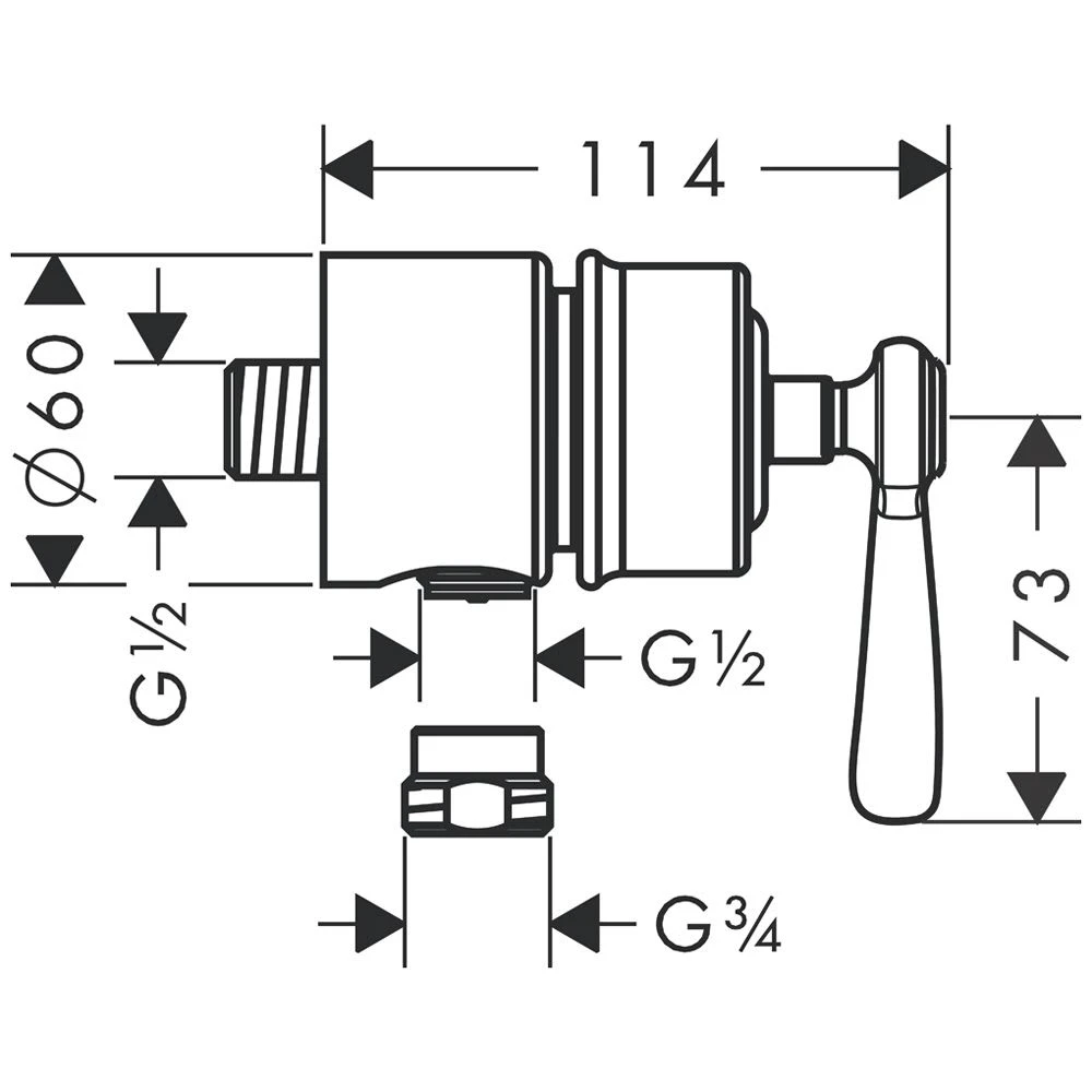 AXOR Montreux Fixfit Stop Schlauchanschluss mit Abstellventil und Hebelgriff