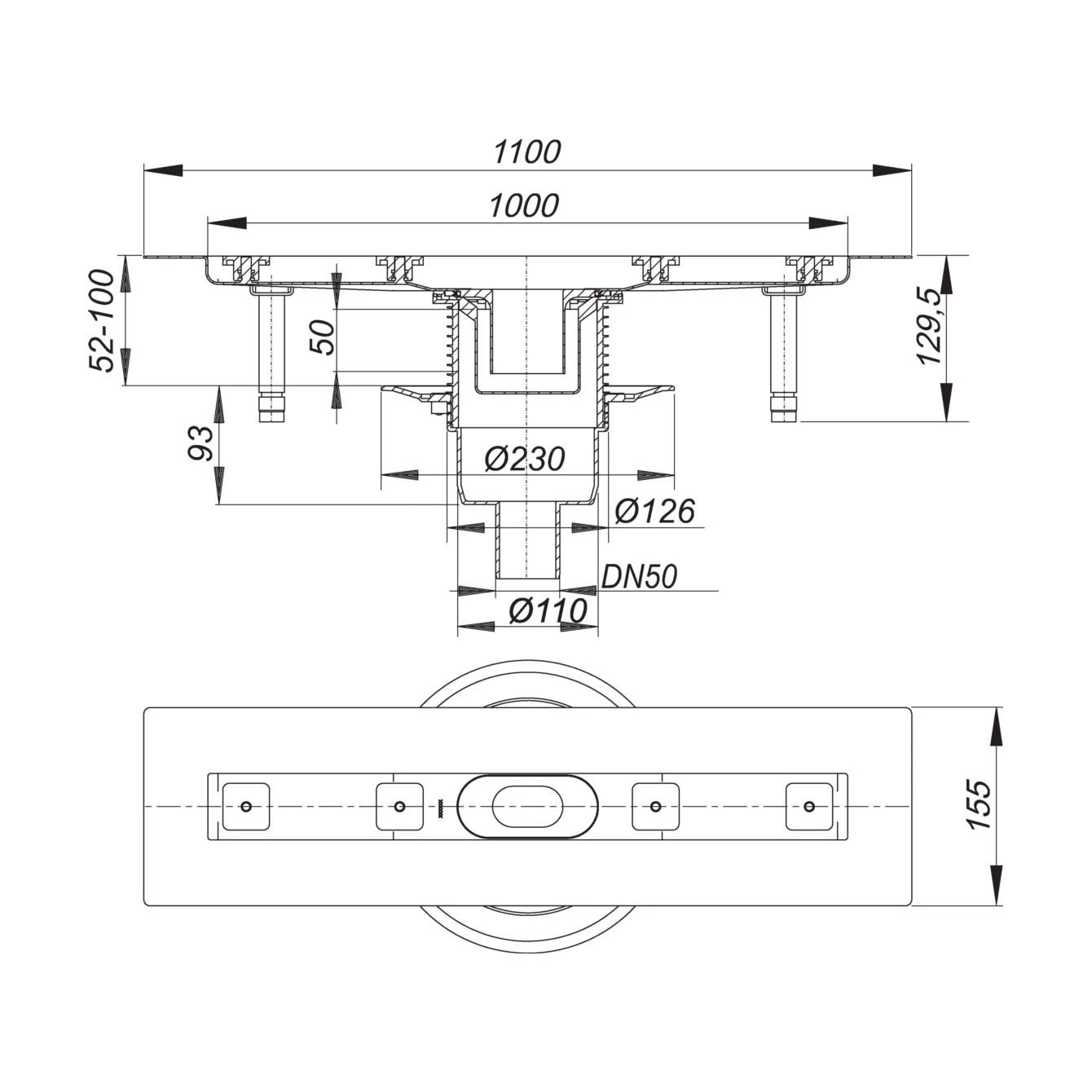 - Länge Ablaufrinne 100 cm