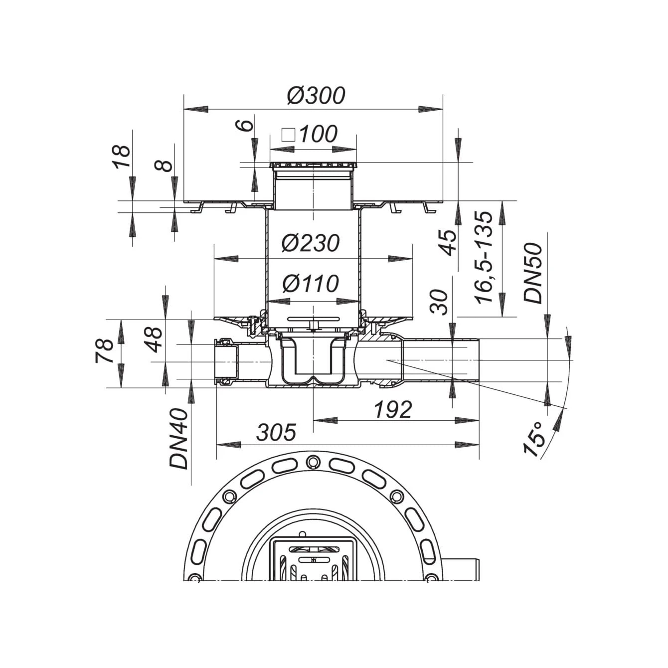- Komplettablauf bestehend aus Bodenablaufgehäuse 42 S,