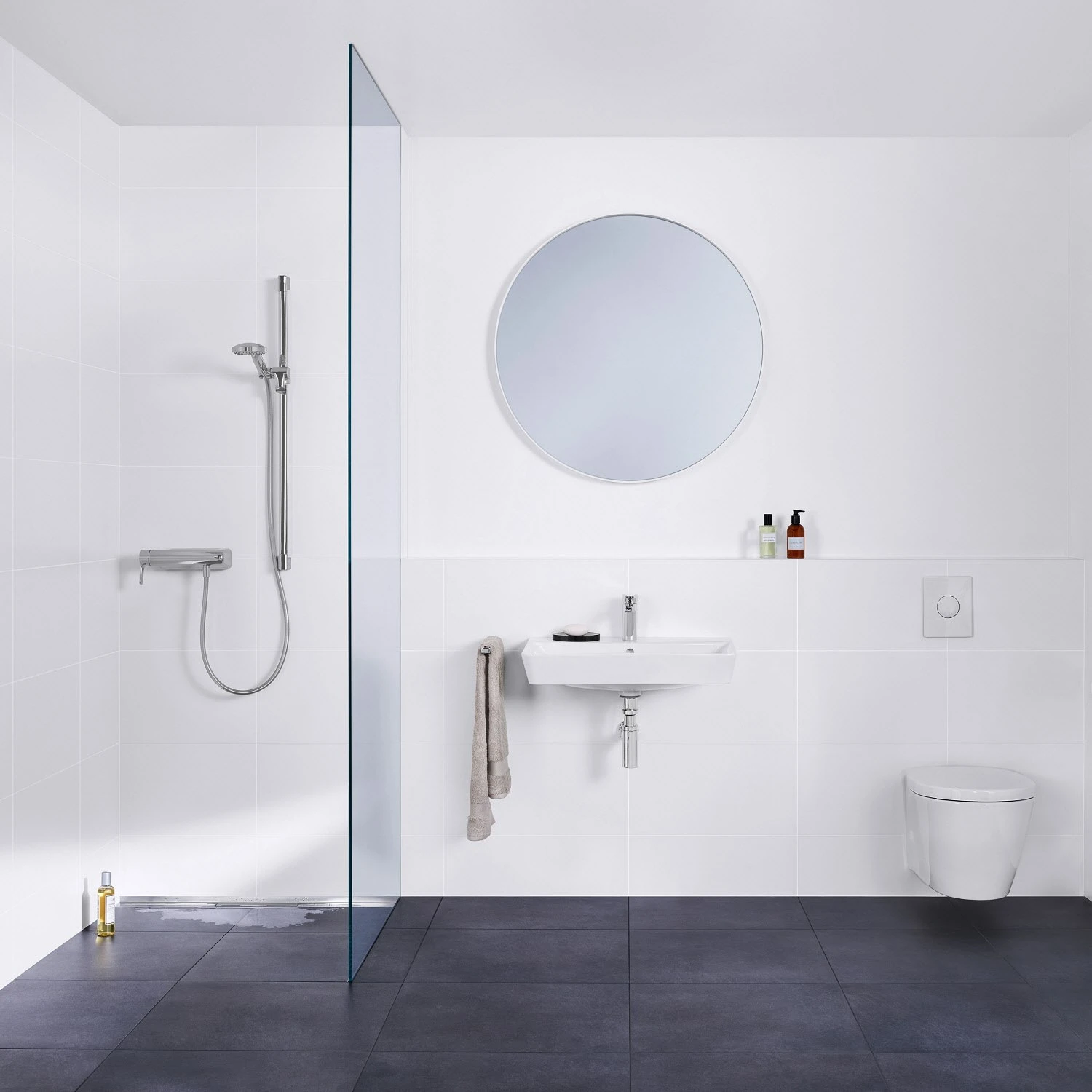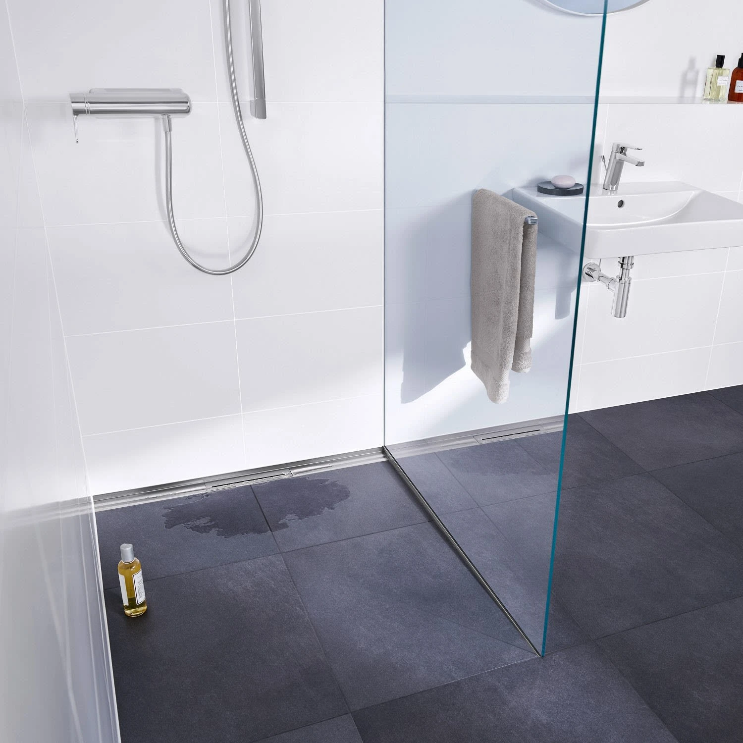 - inkl.: Duschrinnen-Abdeckung, Bauschutzabdeckungen, selbstklebendes Schalldämmband zur Entkopplung vom Baukörper, Montagezubehör und Positionierhilfen