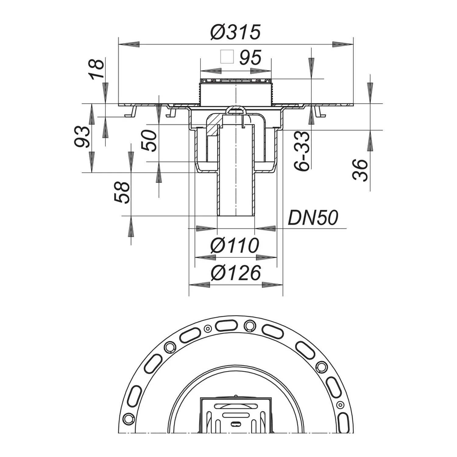 - Flansch für hohen Haftverbund zu Abdichtungsstoffen auf der Oberseite vlieskaschiert, auf der Unterseite mit Estrichankern zur sicheren, dauerhaften Fixierung im Estrich