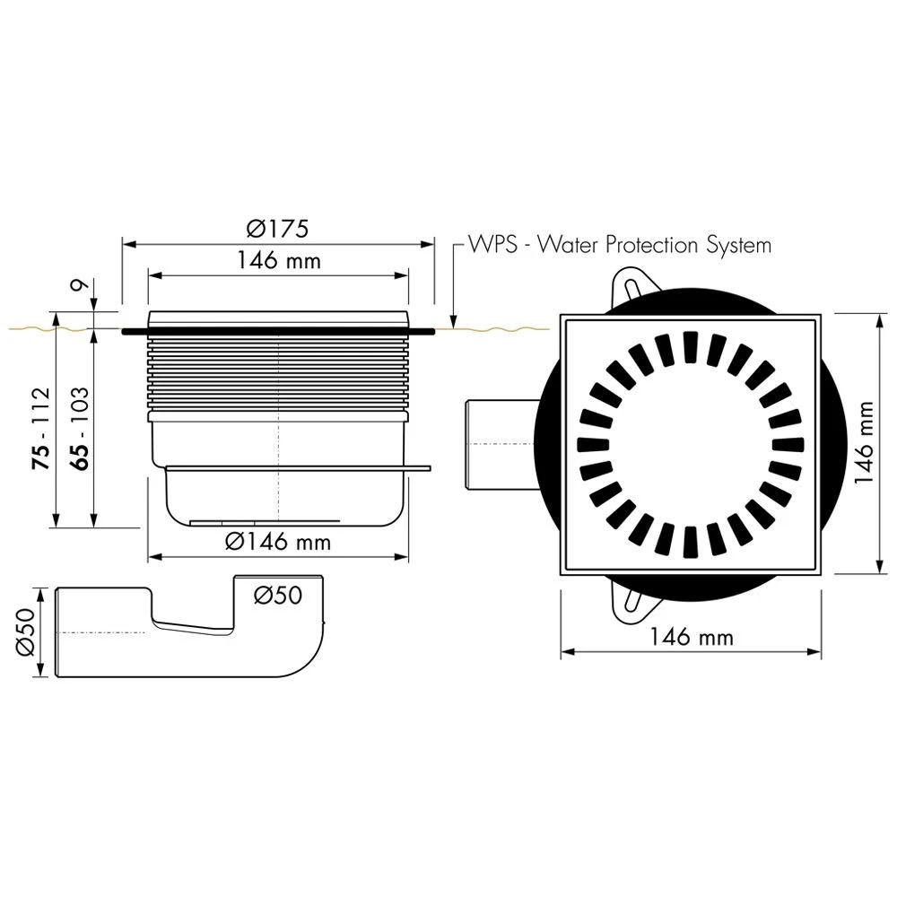 - Siphongehäuse und Abdeckung sind in der Höhe verstellbar