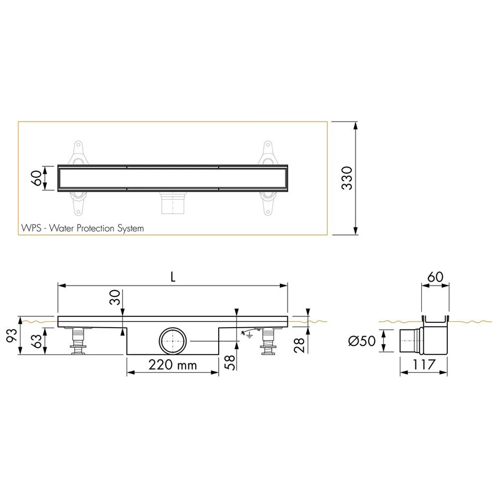 - Ablaufleistung bei Montage an der Wand 42 L/min