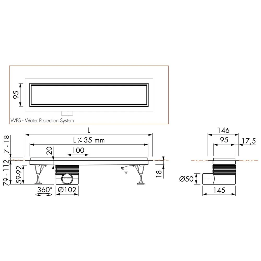 ESS Easy Drain Multi TAF 1600 Zero/Fliese Duschrinne Komplettset