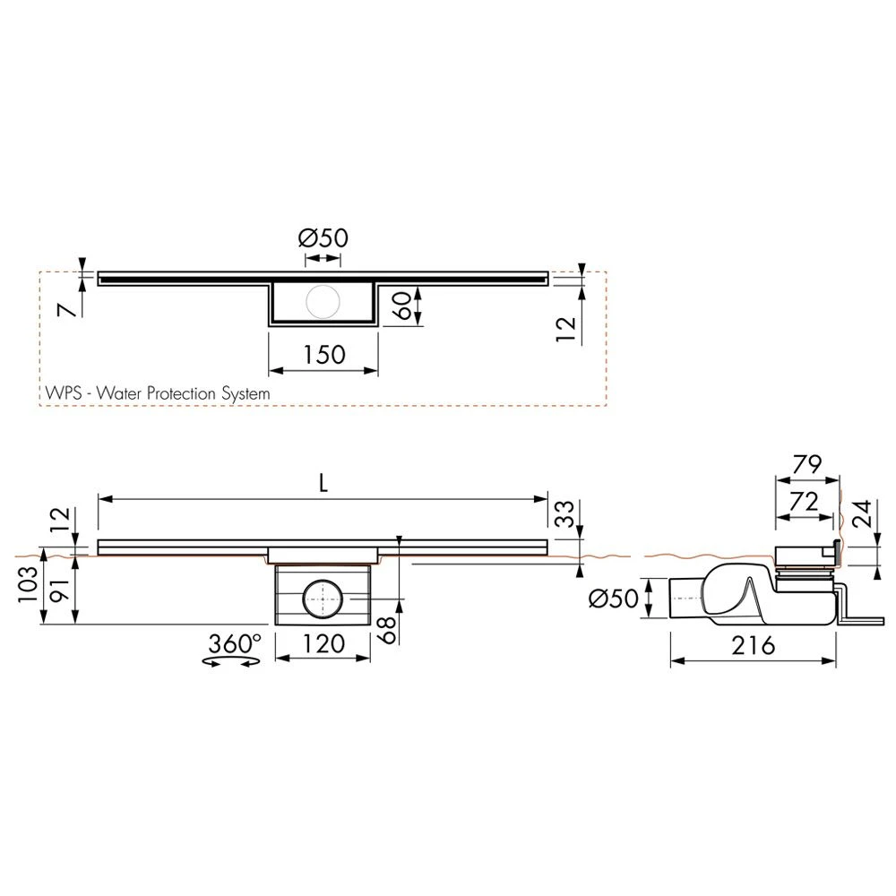 ESS Easy Drain Waterstop Wall Fliese 700 Duschrinne Komplettset