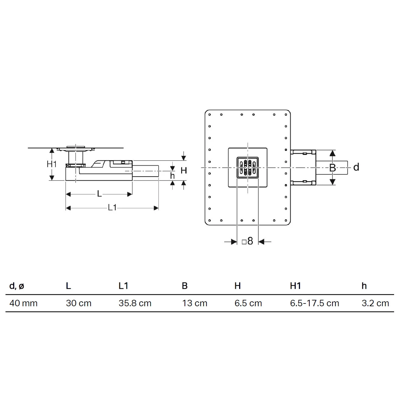 - abweichend zu Anforderungen aus EN 1253 ist die Sperrwasserhöhe nur 3,0 cm