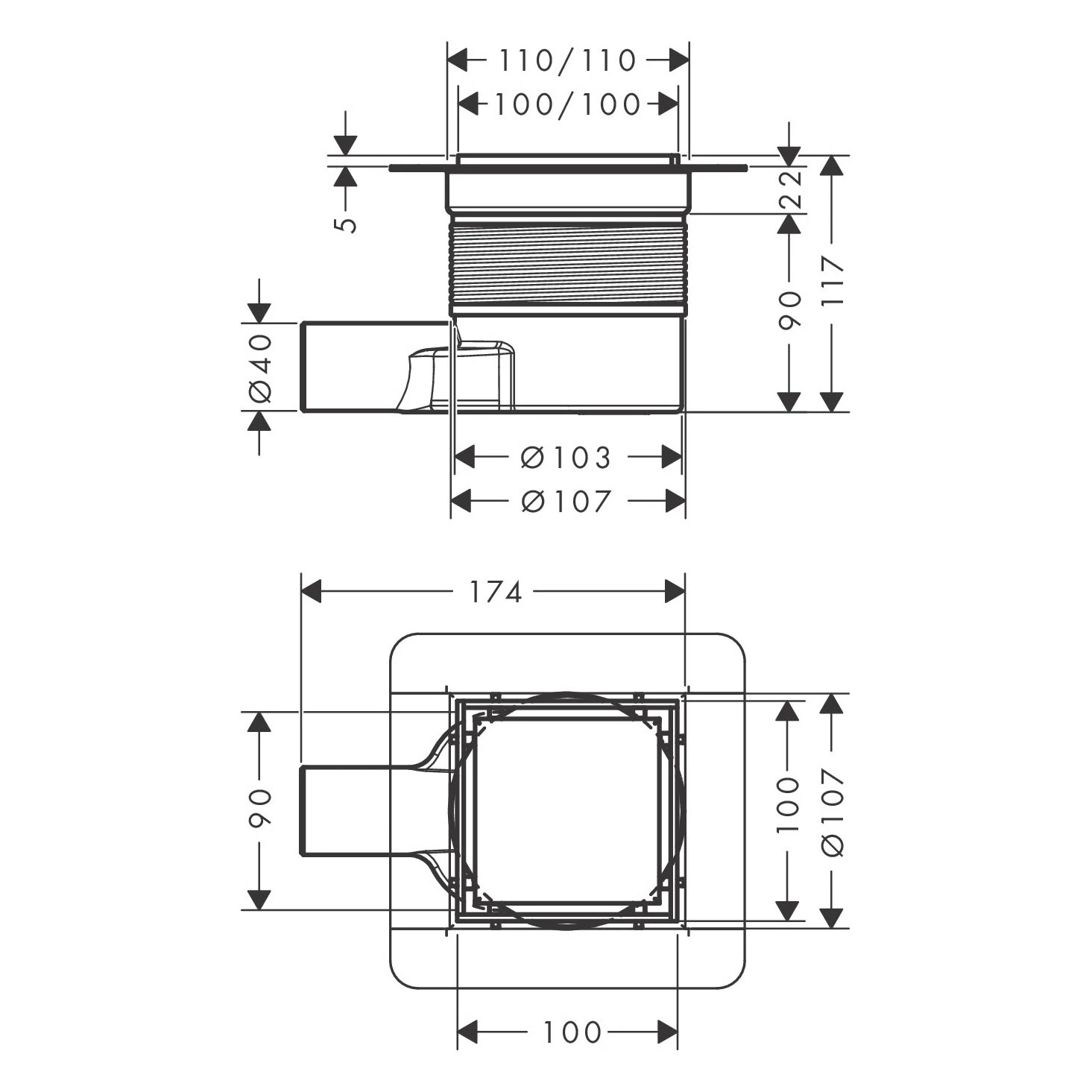 - herausnehmbarer Geruchsverschluss, dreh- und verstellbares Siphongehäuse