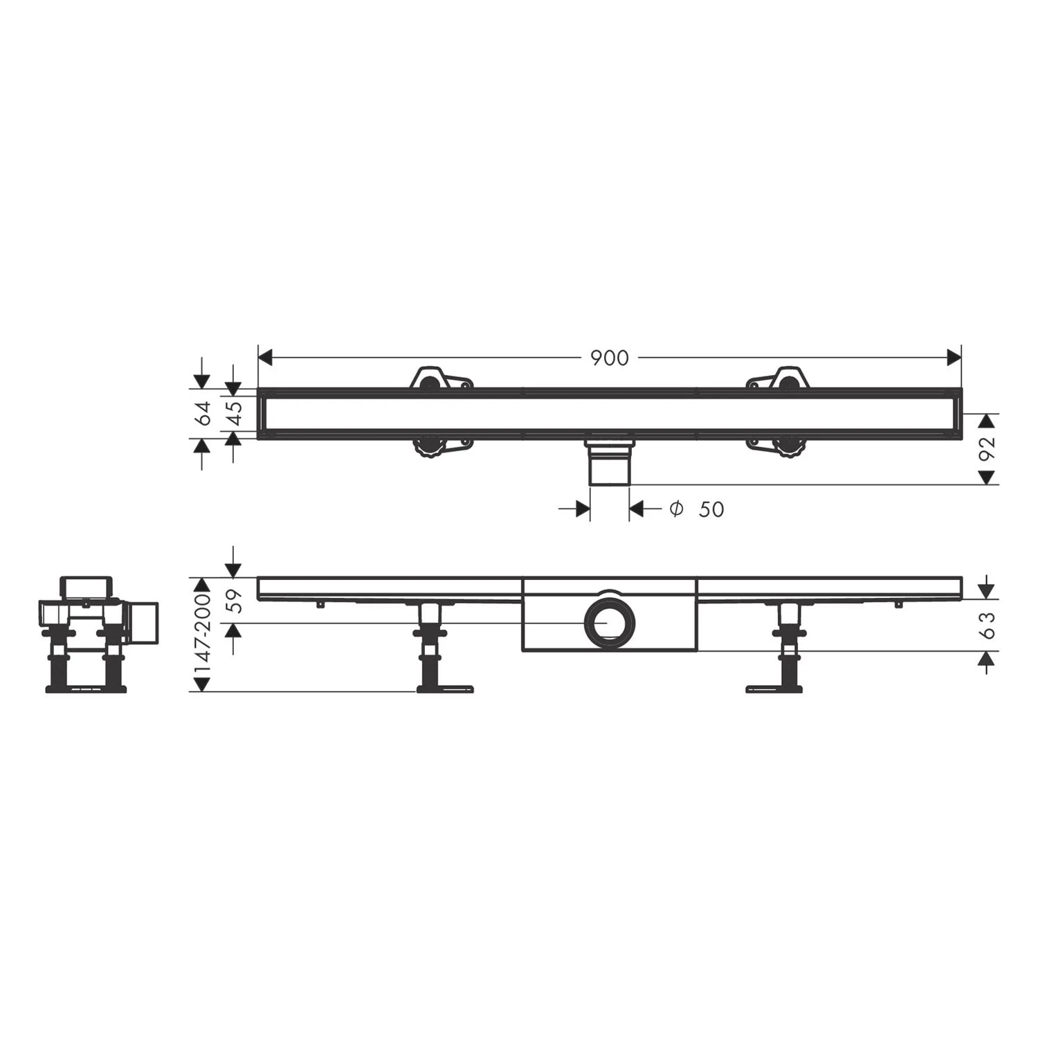 hansgrohe RainDrain Compact Komplettset Duschrinne 90 cm befliesbar für Standardinstallation