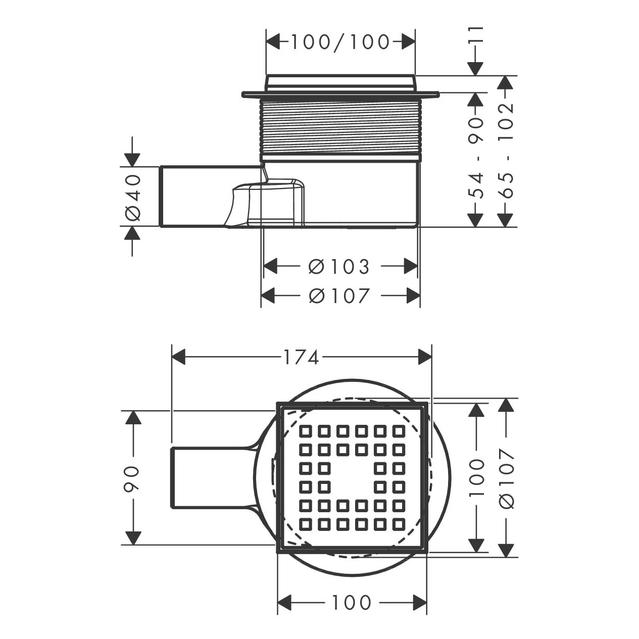 Hansgrohe RainDrain Point Komplettset Punktablauf 10/10 Cm