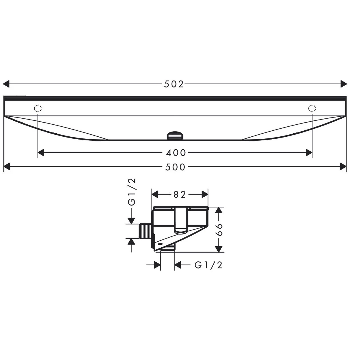hansgrohe Rainfinity Wandanschluss Porter 500 mit Ablage und Brausehalter rechts
