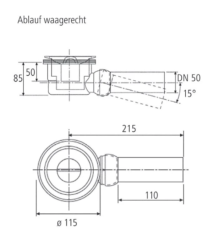 - Anschlussrohr um 15° in der Neigung verstellbar