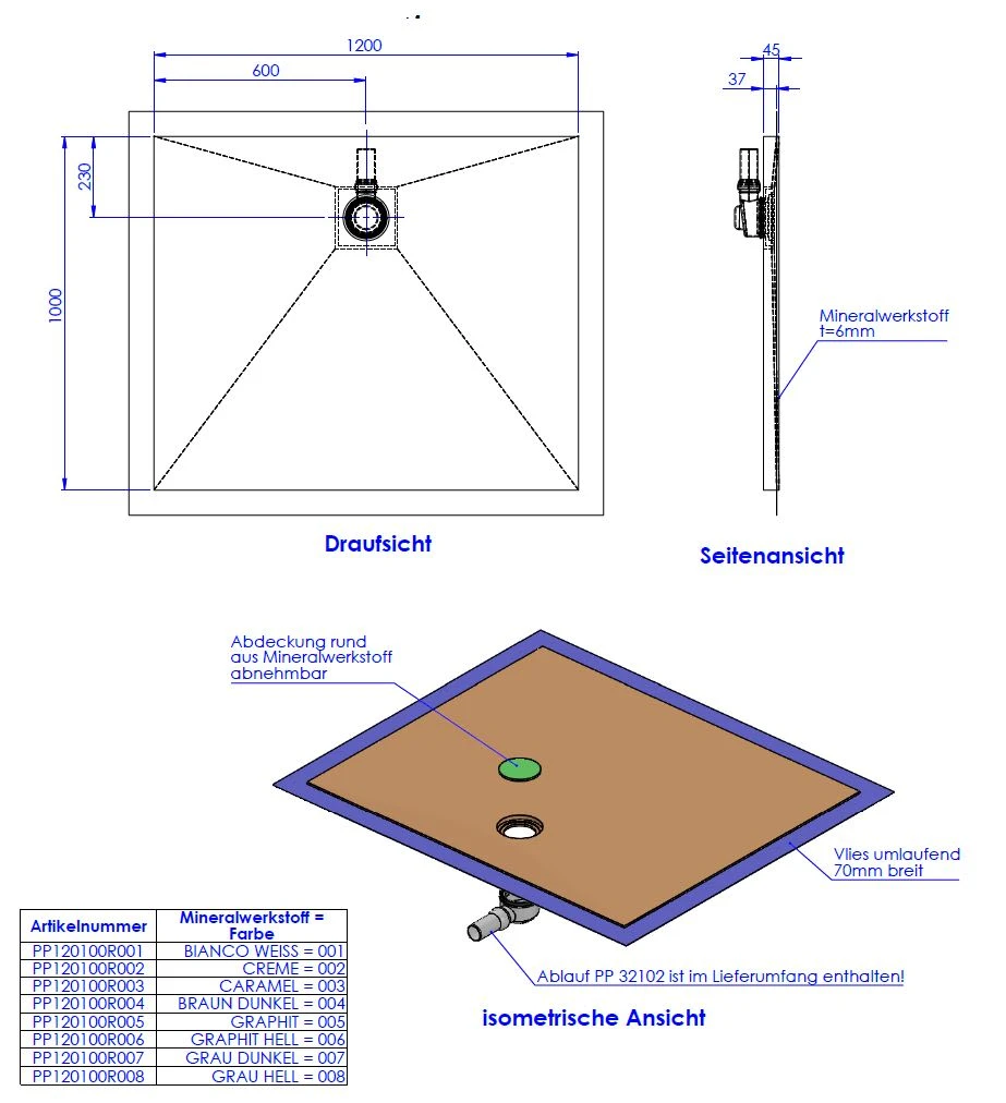 - inkl. Ablauf waagerecht DN 50, Art. PP 32102