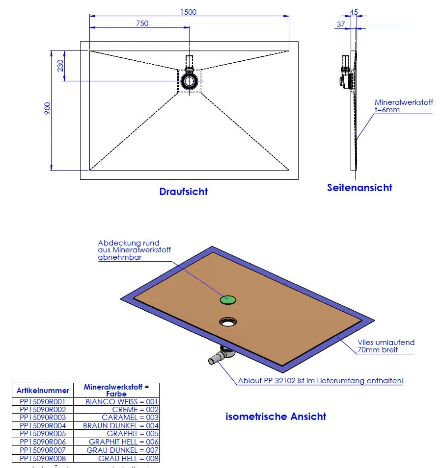 - inkl. Ablauf waagerecht DN 50, Art. PP 32102