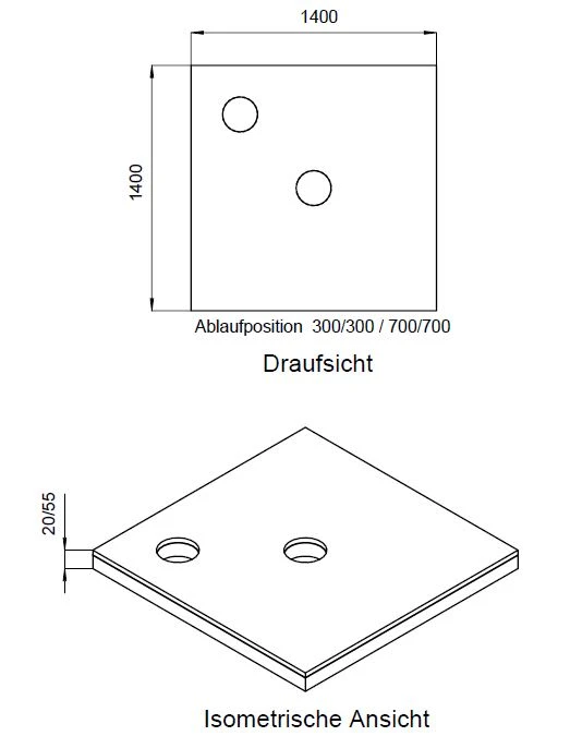 Schedel Plan Unterbauelement 140 x 140 cm bodeneben, 2er Set