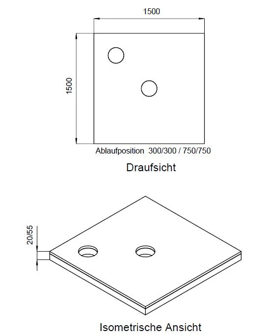 Schedel Plan Unterbauelement 150 x 150 cm bodeneben, 2er Set