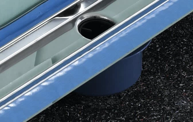- Ablauf für TECE Drainline-Duschrinne zur drehbaren Montage am Rinnenkörper, zum seitlichen Anschluss an DN 70 Abwasserleitung, mit demontierbarem Siphontauchrohr
