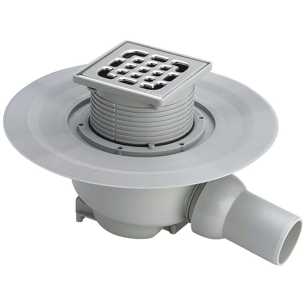- Belastbarkeitsklasse K=300 kg, mit durch Kugelgelenk verstellbarem waagerechtem Ablaufstutzen